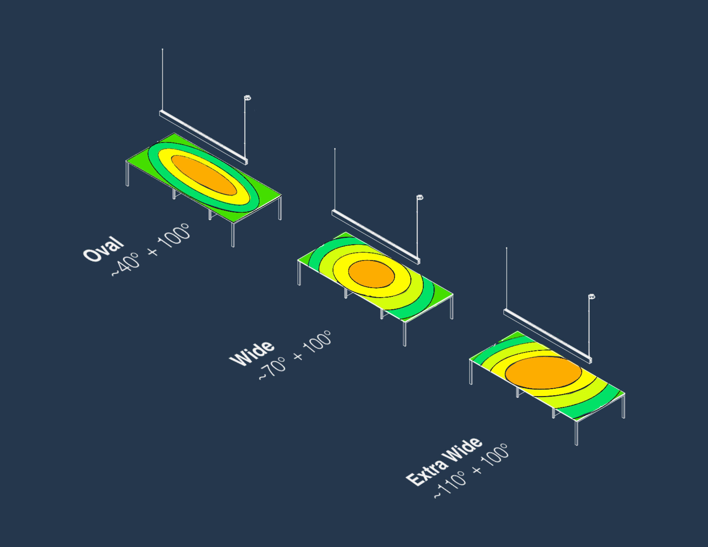 The Linear Continuous offers various optic selection for both direct and indirect light distribution including Lambertian, Oval, Wide, Extra Wide, and Asymmetric for direct and Lambertian, Batwing Wide, Batwing Extra Wide, and Asymmetric for indirect. The flexibility of specifying direct and indirect optics allows full control of the required light direction and performance in the space.